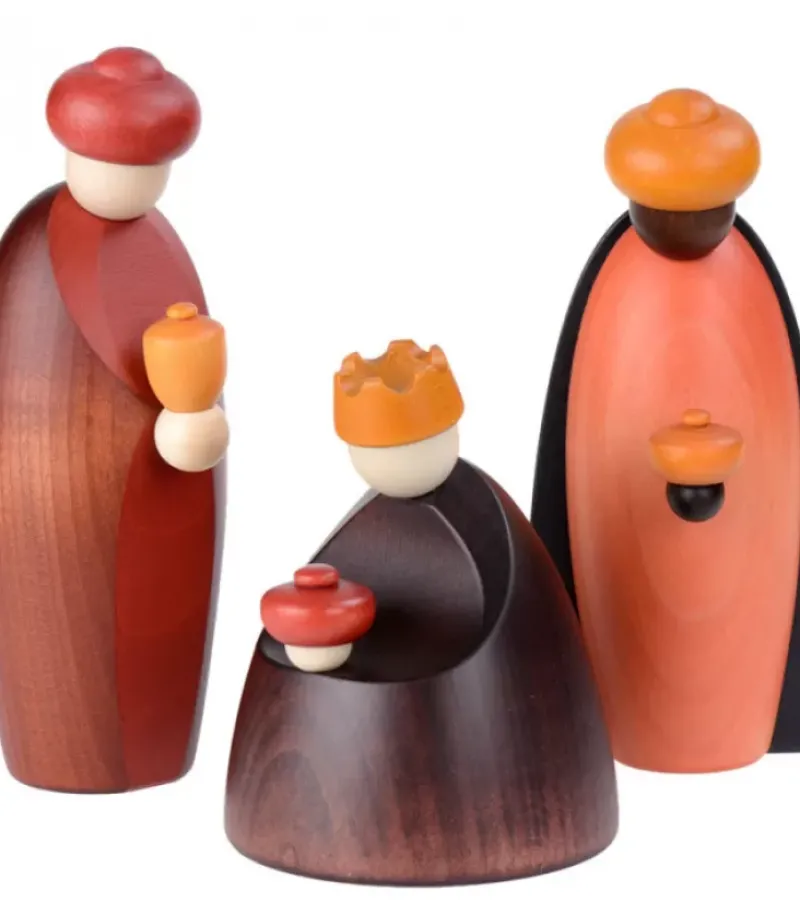 Personnages Crèche De Noël En Bois Peint.