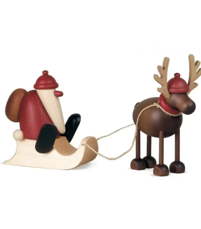 Père Noël En Bois Sur Une Luge Tire Par Une Renne