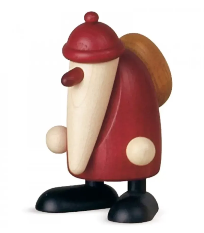 Figurine Père Noël En Bois Peint Avec Une Hotte.