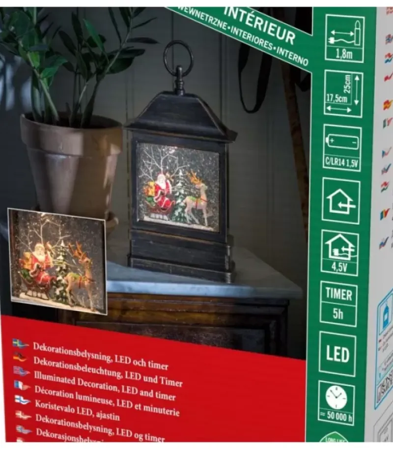 Konstsmide, guirlandes lumineuses de Noël Lanterne À Neige A Led Avec Père Noël Dans Son Traineau, 25 Cm