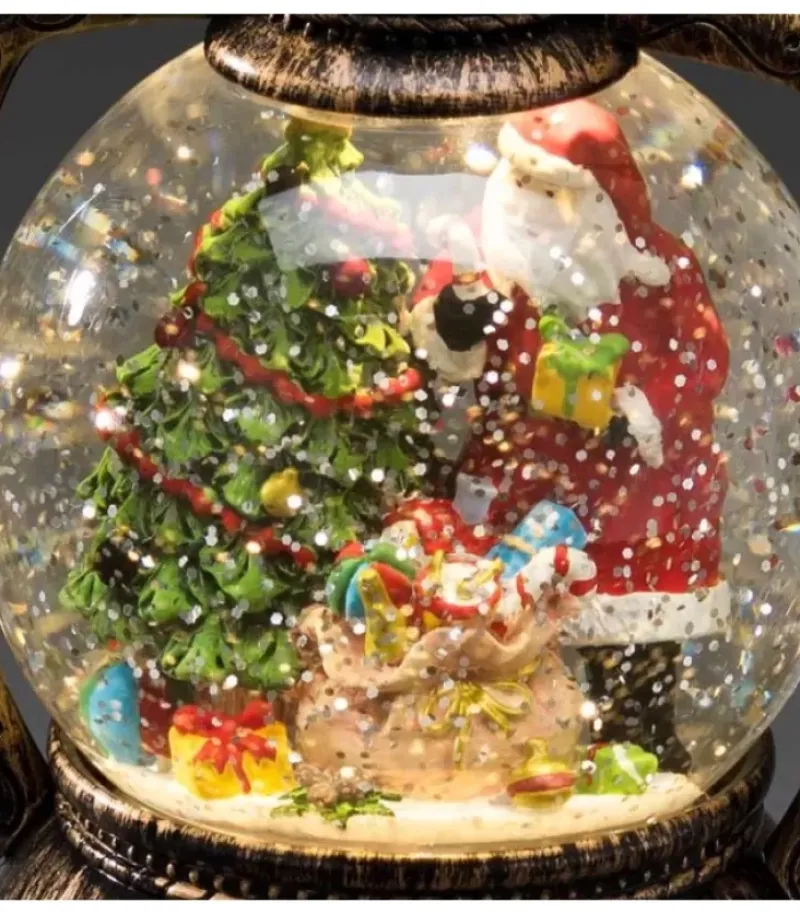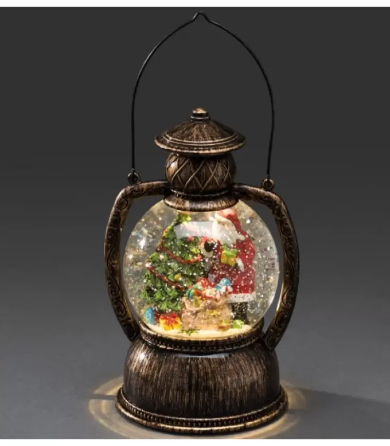 Boule À Neige Noël A Led En Forme De Lanterne-Tempete Avec Père Noël, Remplie D’Eau.