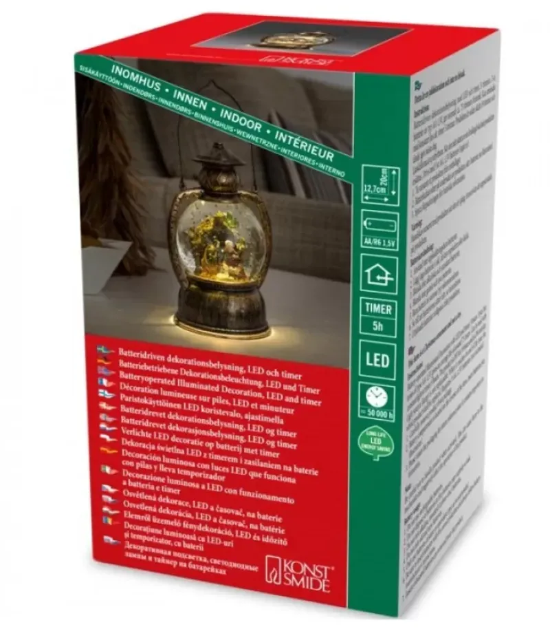 Lanterne De Noël À Neige En Forme De Lanterne-Tempete Avec Crèche De Noël A L’Interieur.