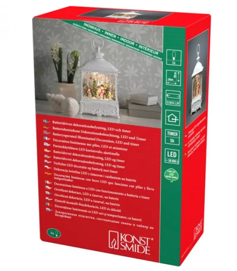 Grande Lanterne De Noël A Eau, 4 Bonshommes De Neige Avec Oiseaux, Couleur Blanc Antique, Hauteur 30 Cm.