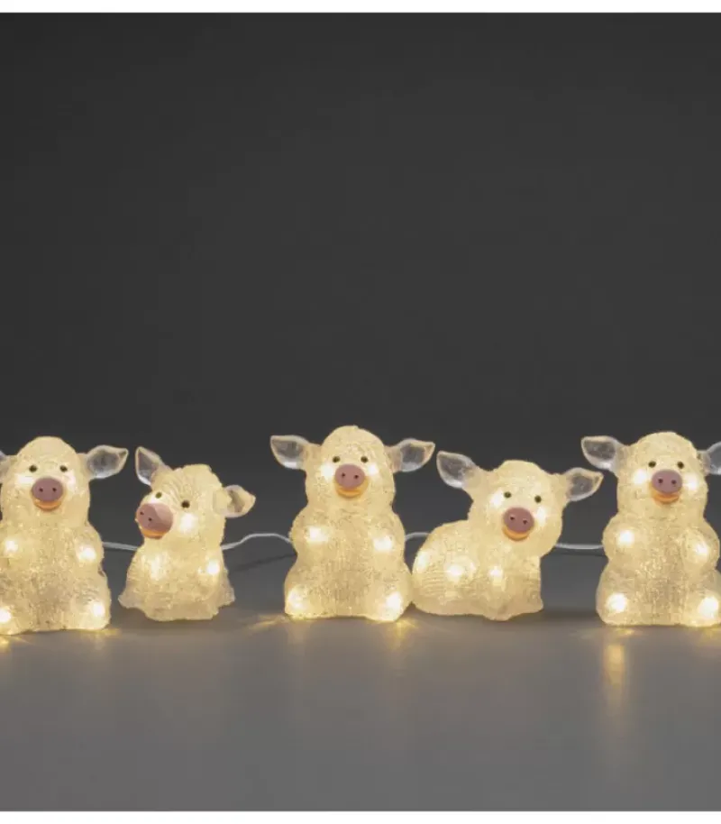 Lot De 5 Petits Cochons En Acrylique A Led, Transparent, 40 Diodes Blanc.