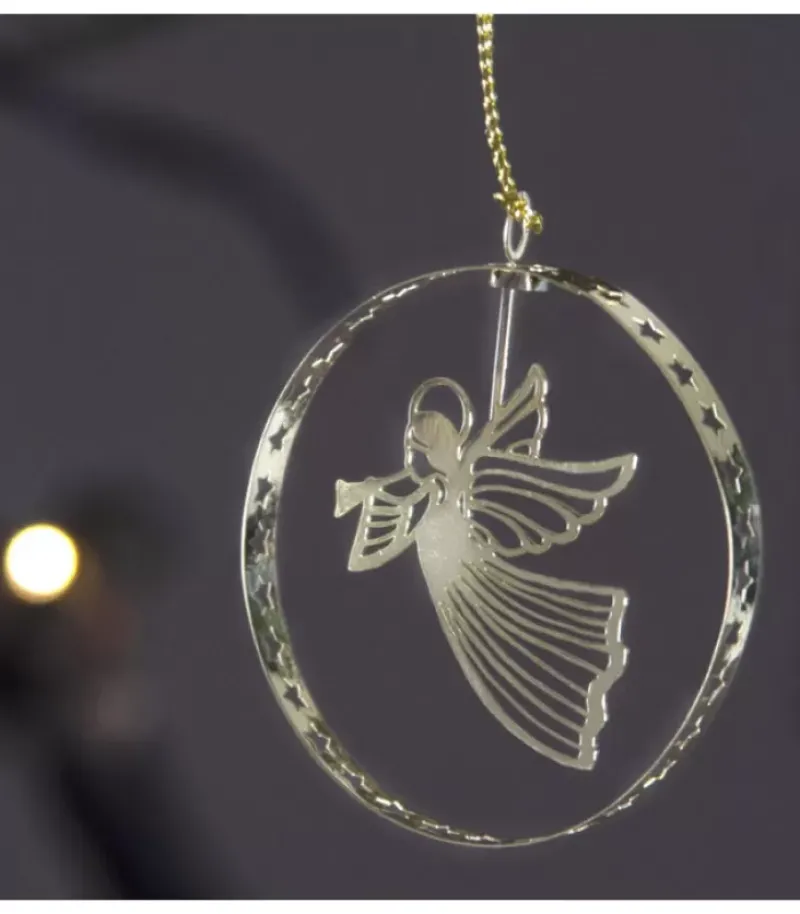 Ange De Noël Volant Dans Une Déco De Sapin En Metal Dore Ronde.