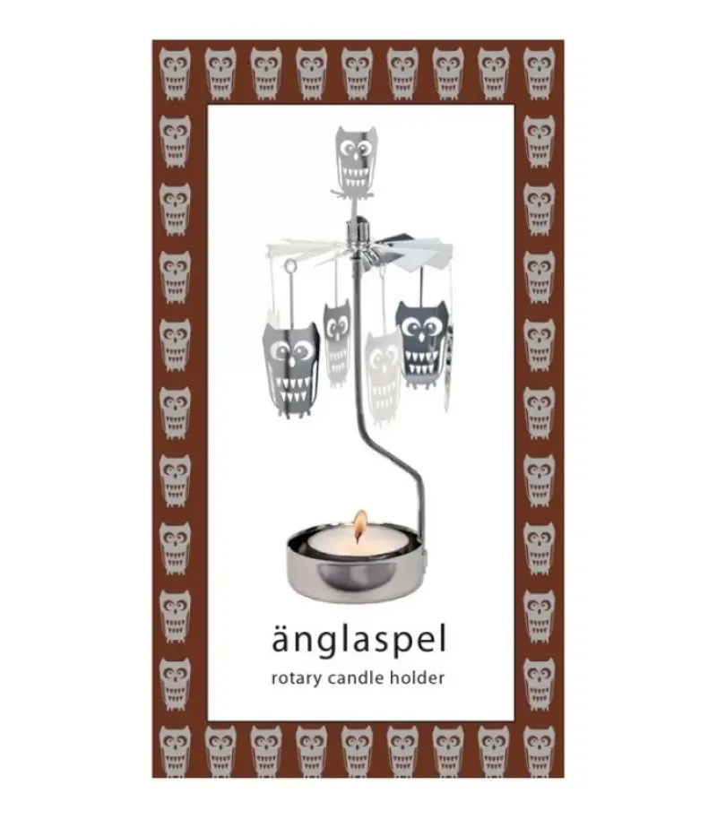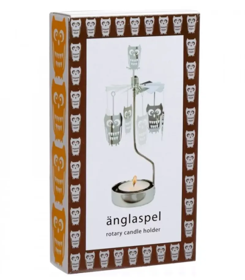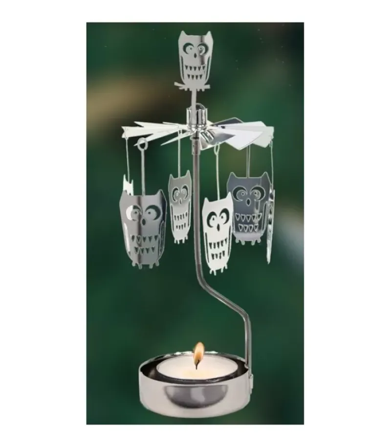 Bougeoir Carrousel Chouette En Metal Chrome.