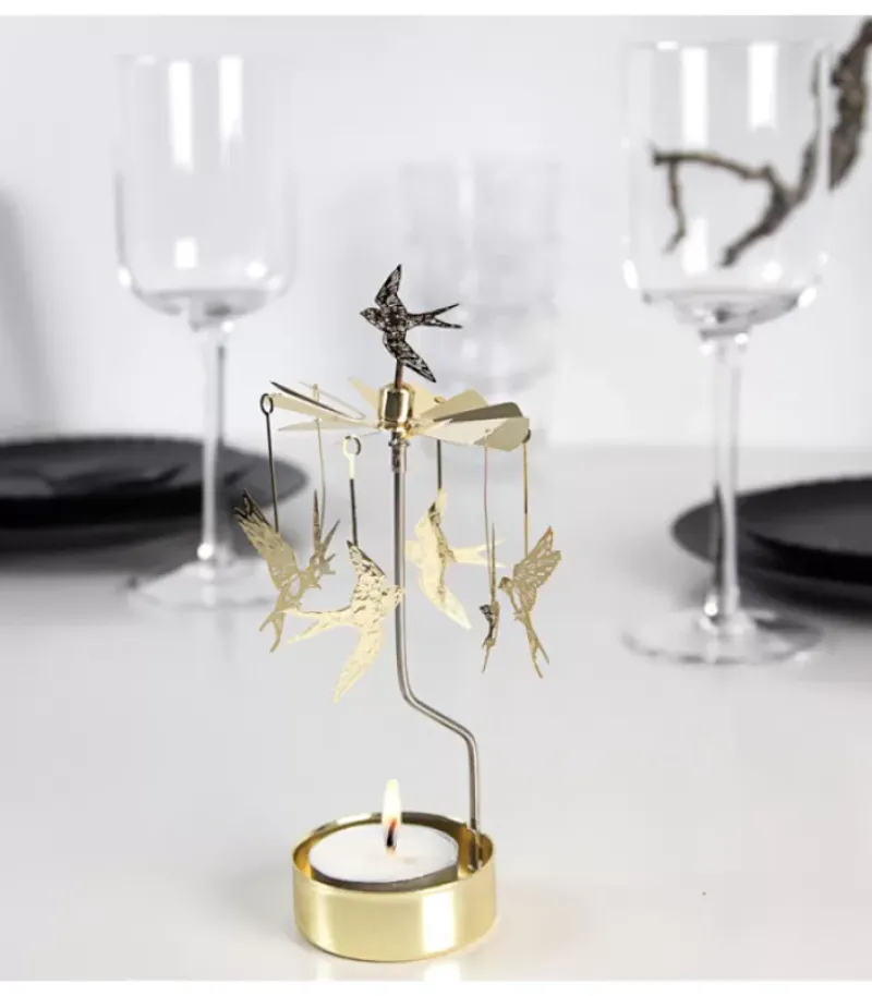 Bougeoir Carrousel Hirondelles En Metal Dore.