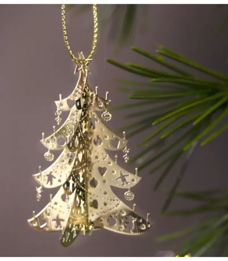 Sapin De Noël En Metal Dore A Suspendre.