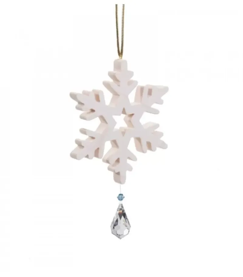 Décoration Pour Sapin, Flocon De Neige En Bois D’Erable Avec Cristal Swarovski.