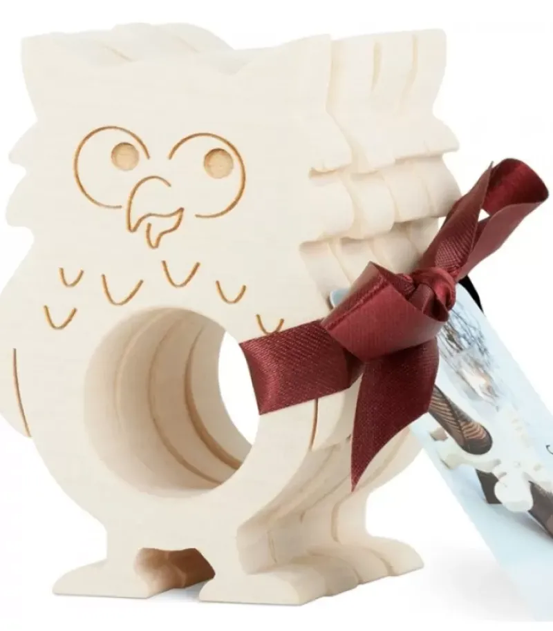 Ronds De Serviette En Bois Naturel, Motif Chouette (4 Pieces)