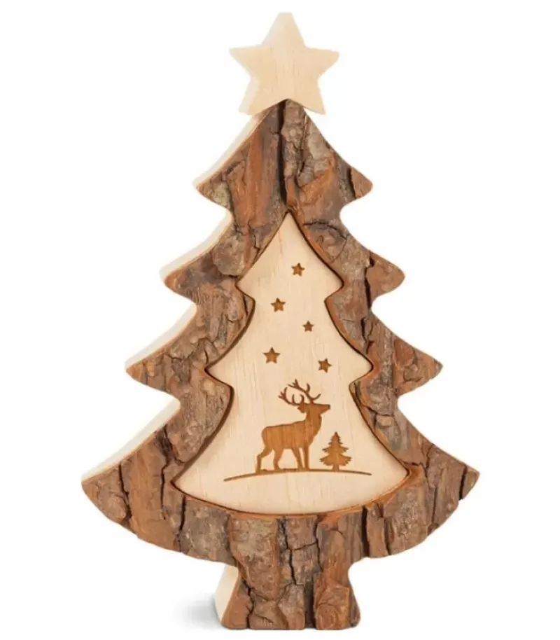 Waldfabrik, photophore en bois et étoile sapin de Noël Crèche A Poser En Ecorce De Bois, 18 Cm