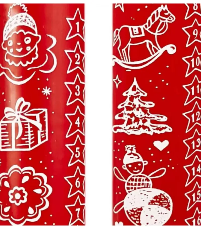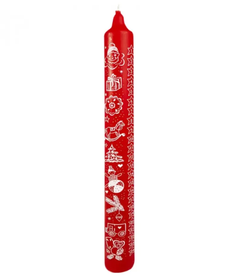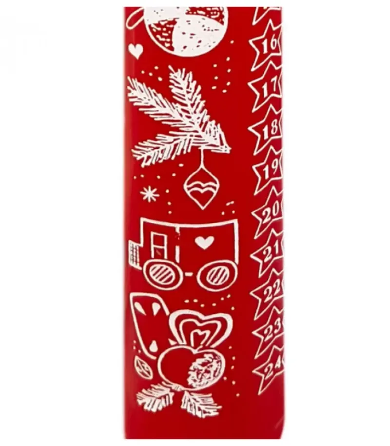 Bougie De L’Avent Graduee Rouge Avec Motif De Noël Imprime 24 Jours.