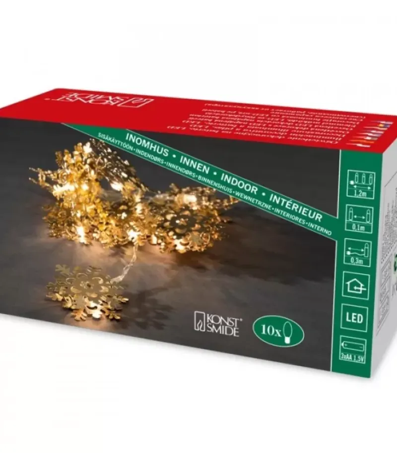 Déco De Noël Maison, Guirlande Lumineuse A Led, Flocons De Neige Metalliques Couleur Dores,