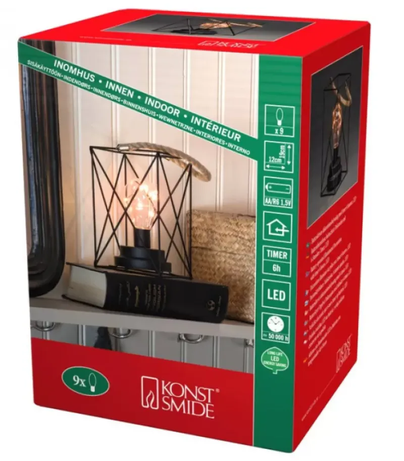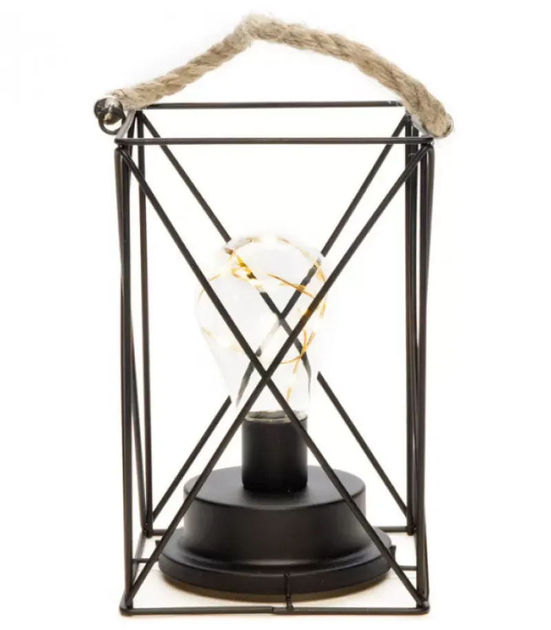 Lanterne En Metal Carree Avec Ampoule Contenant 9 Diodes Led Ambrees, Hauteur 19 Cm.