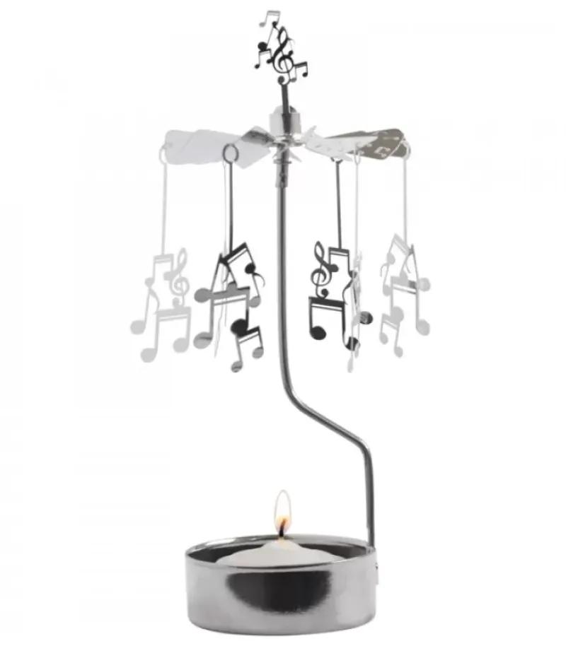 Bougeoir Carrousel Avec Six Notes De Musique En Metal Argente.