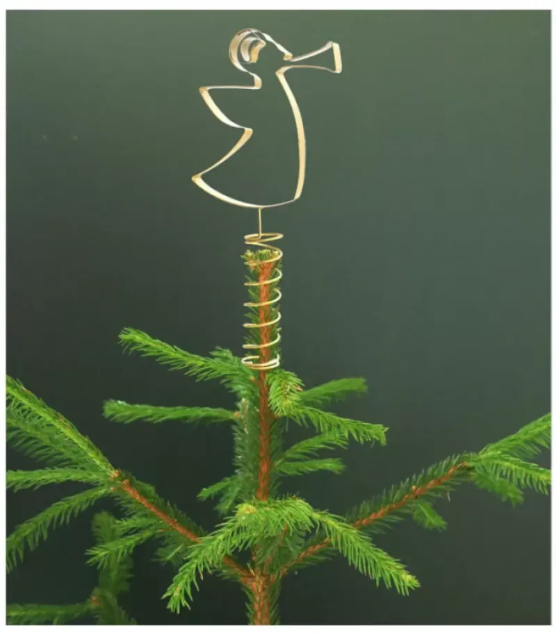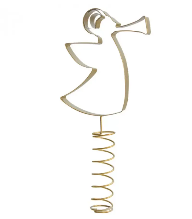 Cimier De Sapin 21 Cm, Ange En Metal Dore Jouant De La Trompette.