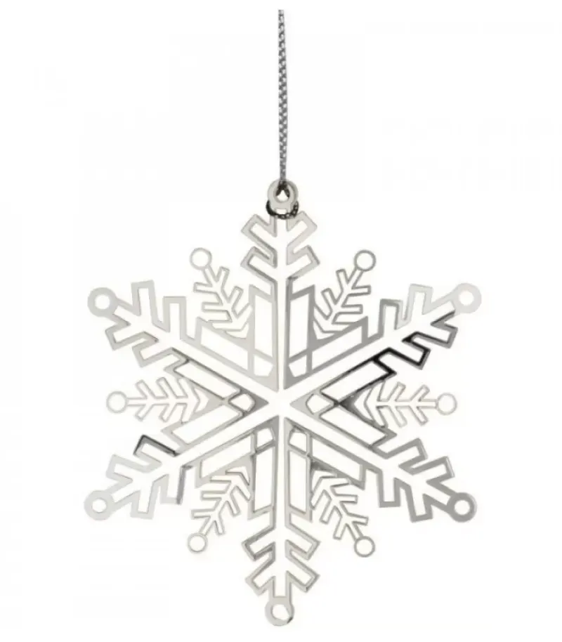 Flocon De Neige En Metal Argente A Suspendre Au Sapin.
