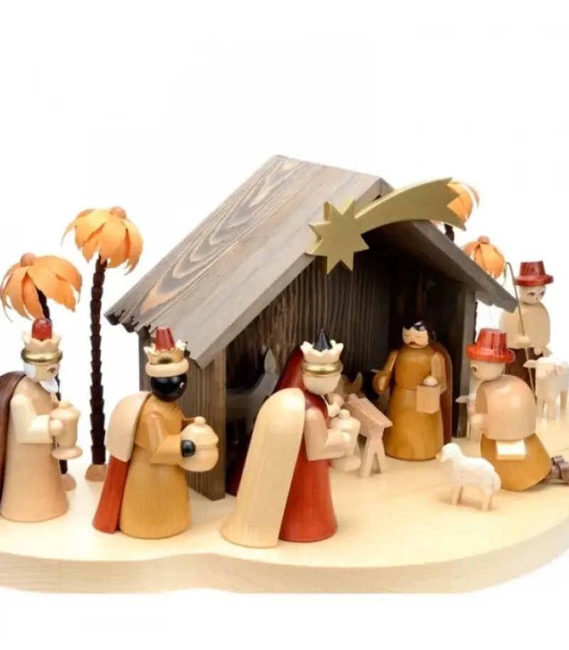 Grande Crèche De Noël De Fabrication Artisanale De 46 Cm.