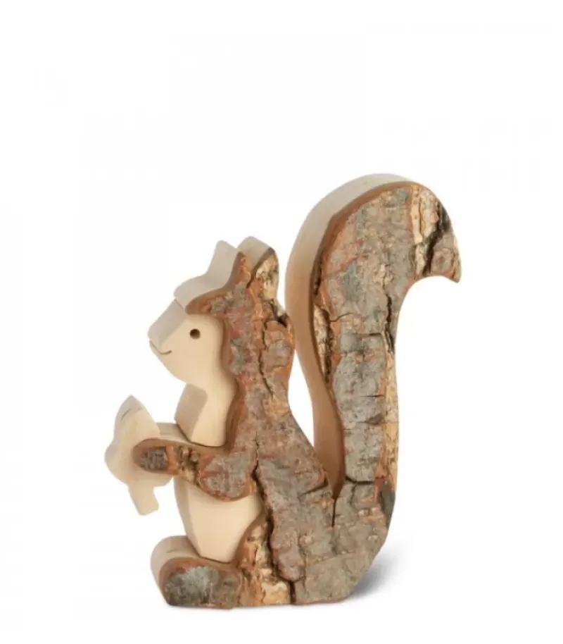 Ecureuil En Bois 7,5 Cm Avec Une Noisette Entre Les Pattes.